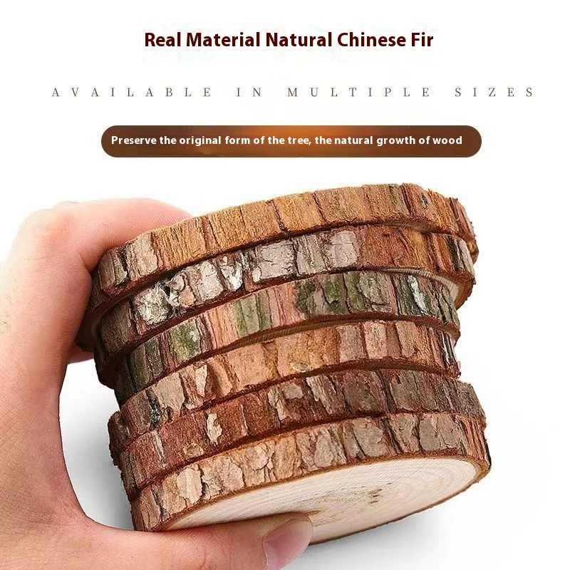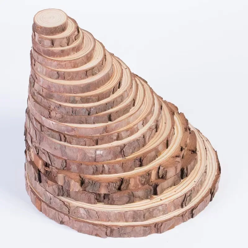 Natural pine wood log chips perfect for DIY crafts, kindergarten projects, and handmade decorations. These round wood slices feature natural bark edges and a smooth surface ideal for painting, laser engraving, wood burning, ornaments, and decorative background walls. Great for year-round crafting, holiday decor, classroom activities, and personalized gifts.